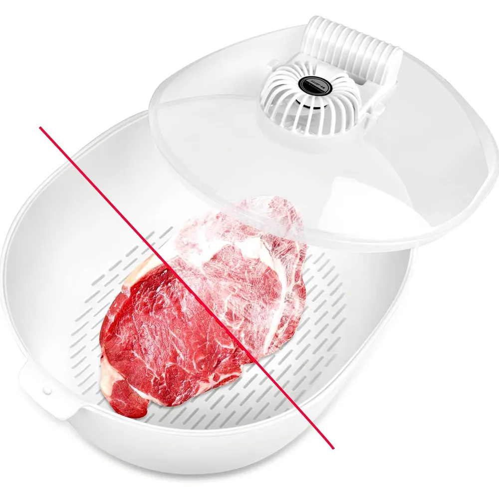 • استمتعوا بمأكولات صحية في أقل وقت مع آلة اذابة الطعام واللحوم المجمدة. تذوب بسرعة ويسهل تنظيفه، لتجربة فريدة من نوعها.