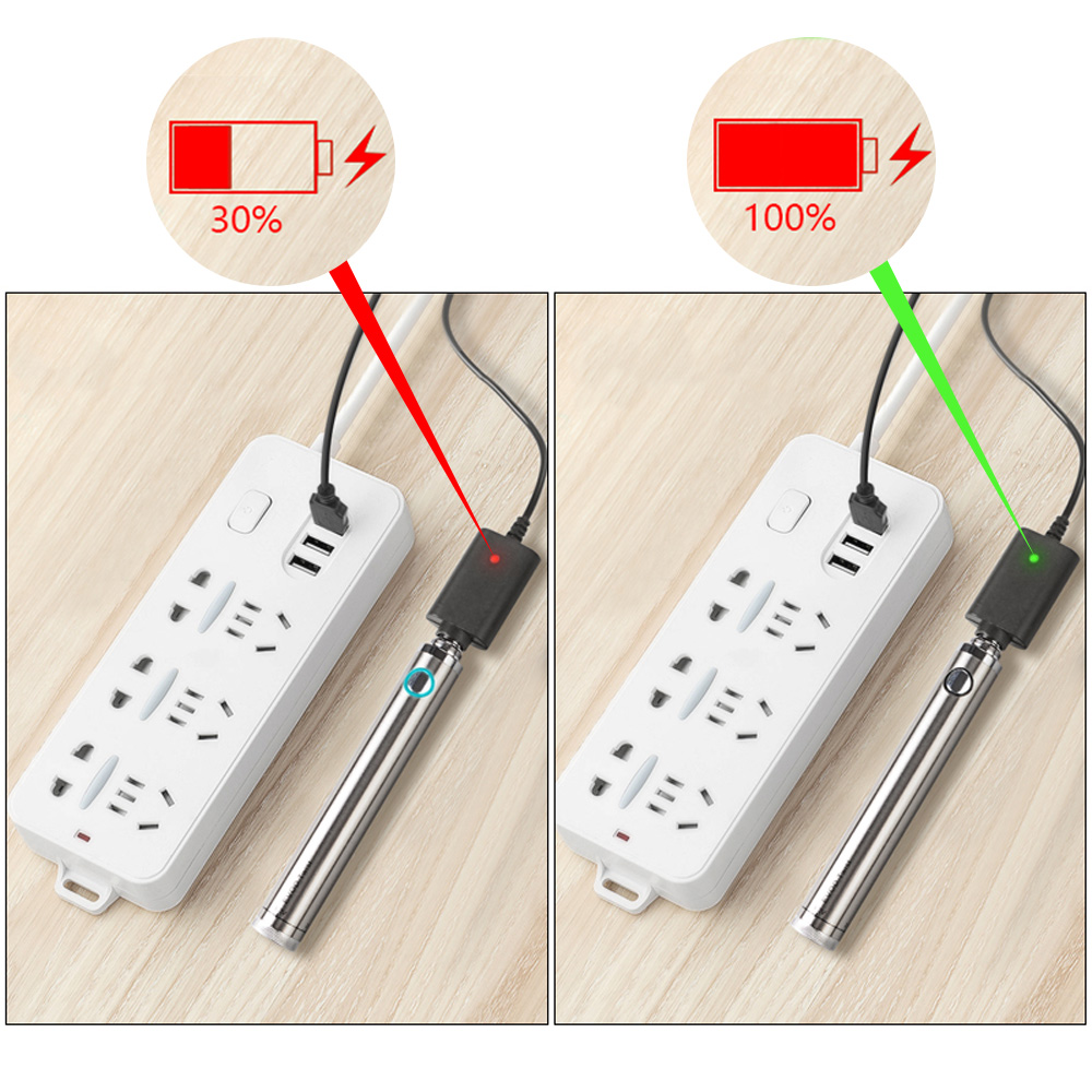 • به ضوء مؤشر عند انخفاض البطارية يضئ أحمر وعند الشحن بالكامل يكون أخضر.