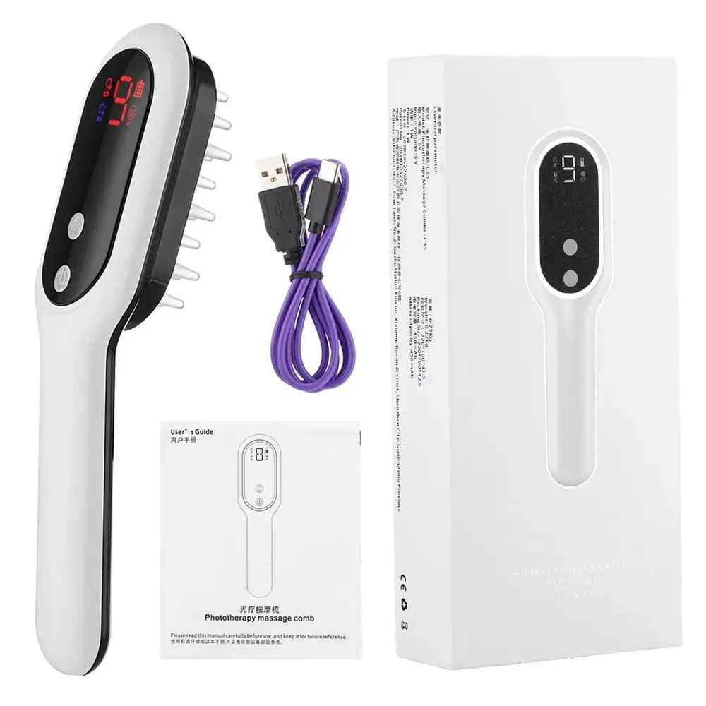 • مشط تدليك للعلاج بالضوء مع كابل شحن type C.